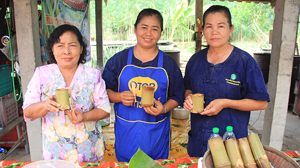 การเผาข้าวหลาม แบบภูมิปัญญาชาวบ้าน โดยการขุดดินเป็นร่องแล้วนำกระบอกไปฝังในดิน ใช้ฟืนล้อมแล้วจุดไฟเผา แต่เนื่องจากวิธีการดังกล่าวทำได้เฉพาะตอนกลางคืน จึงได้มีการเผาข้าวหลามในถัง 200 ลิตรแทน โดยใส่ถ่านไว้ข้างล่าง อบไว้ประมาณ 2 ชม.จะได้ข้าวหลามที่มีรสชาติและกลิ่นที่เหมือนการเผาแบบดั้งเดิม ซึ่งปัจจุบันได้มีการถ่ายทอดภูมิปัญญาให้คนรุ่นหลัง โดยทำเป็นจุดเรียนรู้อีกจุดหนึ่งของชุมชน